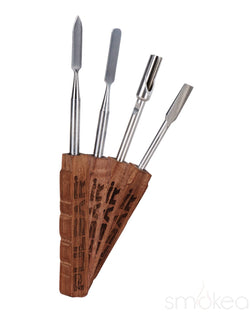 Enhance your concentrate sessions with the Pulsar Coalescence Wooden Dab Tool Set, a versatile four-piece kit designed for every dabbing situation. Each tool in the set features a sleek stainless steel tip paired with a smooth wooden handle, combining function with a natural aesthetic. Branded with the iconic Pulsar logo, these tools not only perform well—they look good doing it.