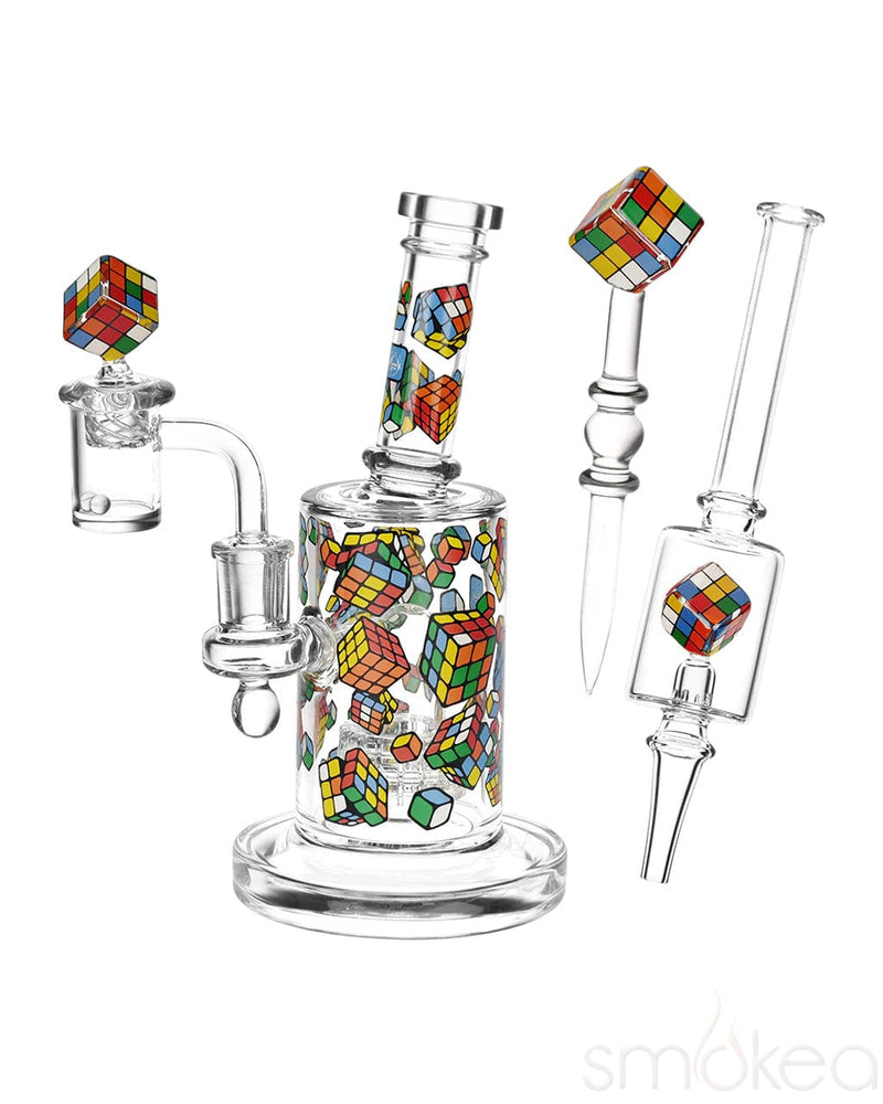Level up your dabbing experience with the Pulsar Greatest Hits Series Cubez Rig & Straw Bundle — a colorful and playful set designed for smooth, flavorful hits with a retro twist. Crafted from clear borosilicate glass and featuring glow-in-the-dark decals of rotating puzzle cubes, this dynamic duo from Pulsar’s Greatest Hits Series brings nostalgic energy and vibrant style to every session.