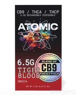 Embrace bold flavor and deep relaxation with the Atomic Delta 6.5g CB9 + THCA + THCP Vape in the powerful Tiger Blood indica strain. This hard-hitting disposable is infused with a trio of premium cannabinoids—CB9, THCA, and THCP—delivering a full-bodied experience designed for ultimate chill. Tiger Blood blends sweet watermelon, strawberry, and subtle coconut notes for a tropical taste that perfectly complements its deeply calming effects.