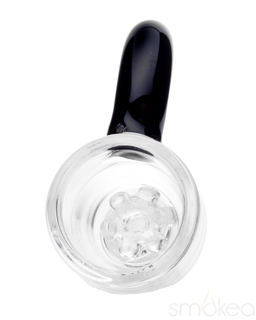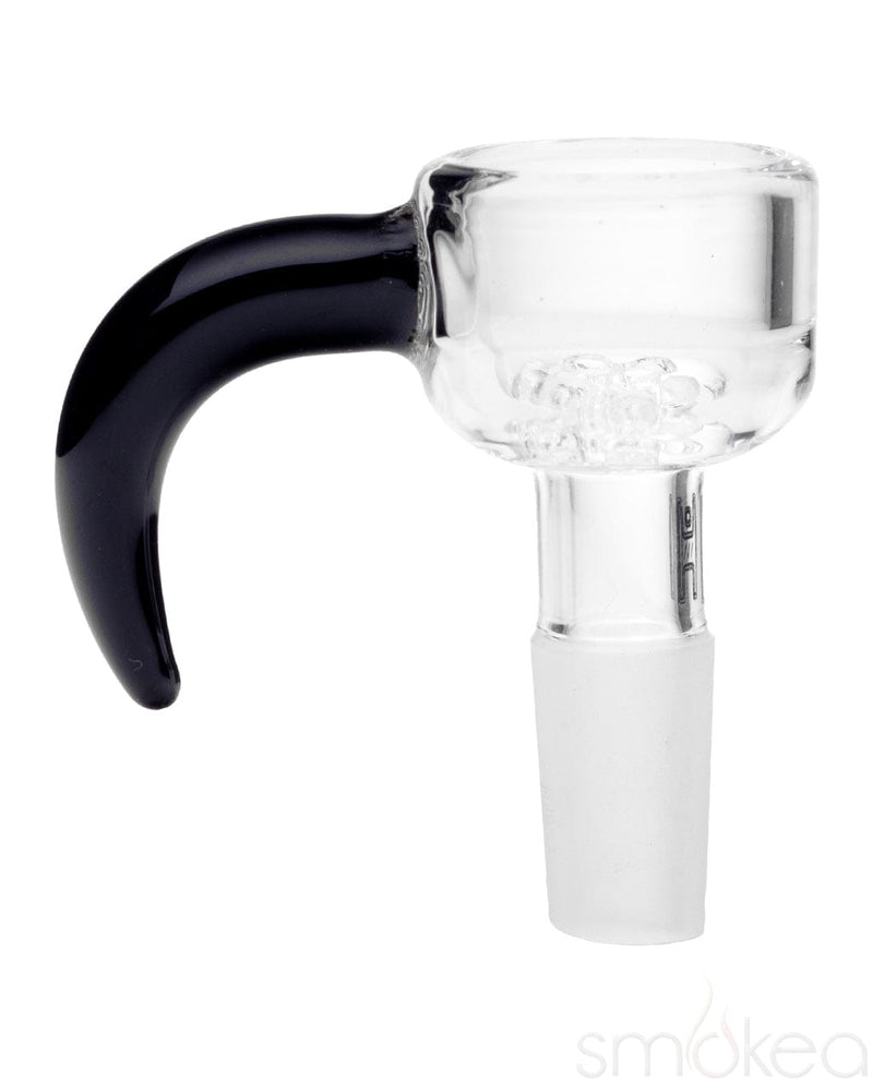 The Human Grade 14mm Horn Bowl adds a bold, functional accent to your water pipe with its eye-catching color-accented horn design. Made from thick, high-quality borosilicate glass, this bowl delivers long-lasting durability and a secure fit on any 14mm water pipe. The horn detail not only makes a visual statement but also serves as a convenient grip, making it easy to remove and handle during use.
