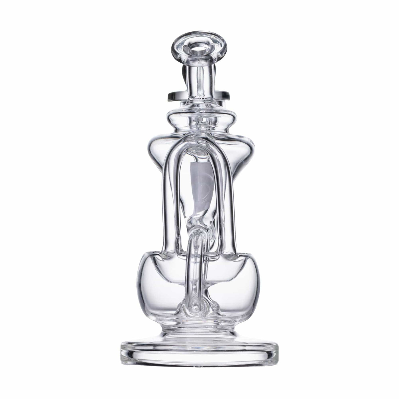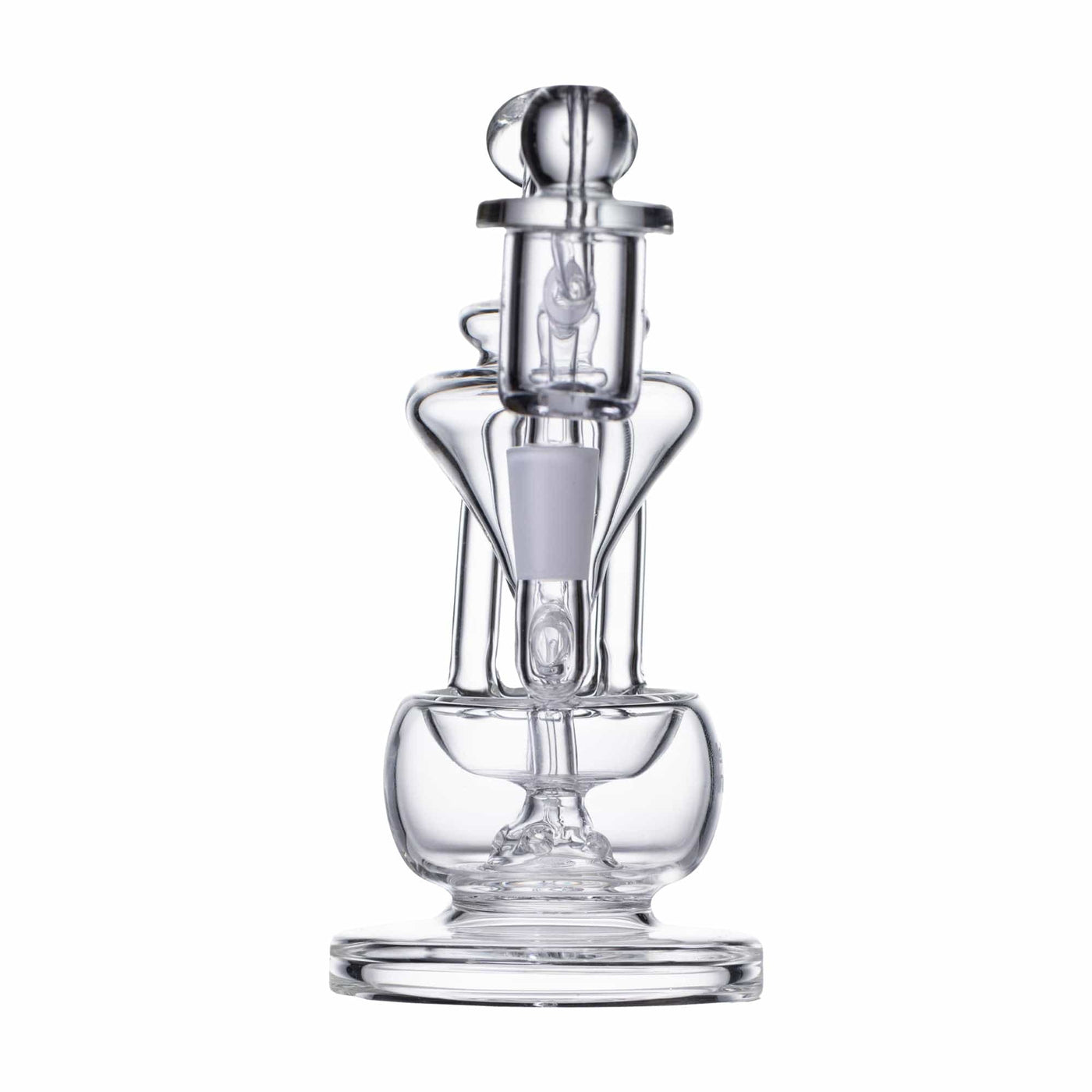 Measuring just 5 inches tall, this rig is perfect for desktop setups or on-the-go dabbers who don’t want to compromise on function. The double uptake recycler continuously cycles water and vapor through the rig, resulting in incredibly smooth and cooled hits. The built-in oil catch keeps your rig cleaner for longer by trapping excess concentrate before it enters the base.