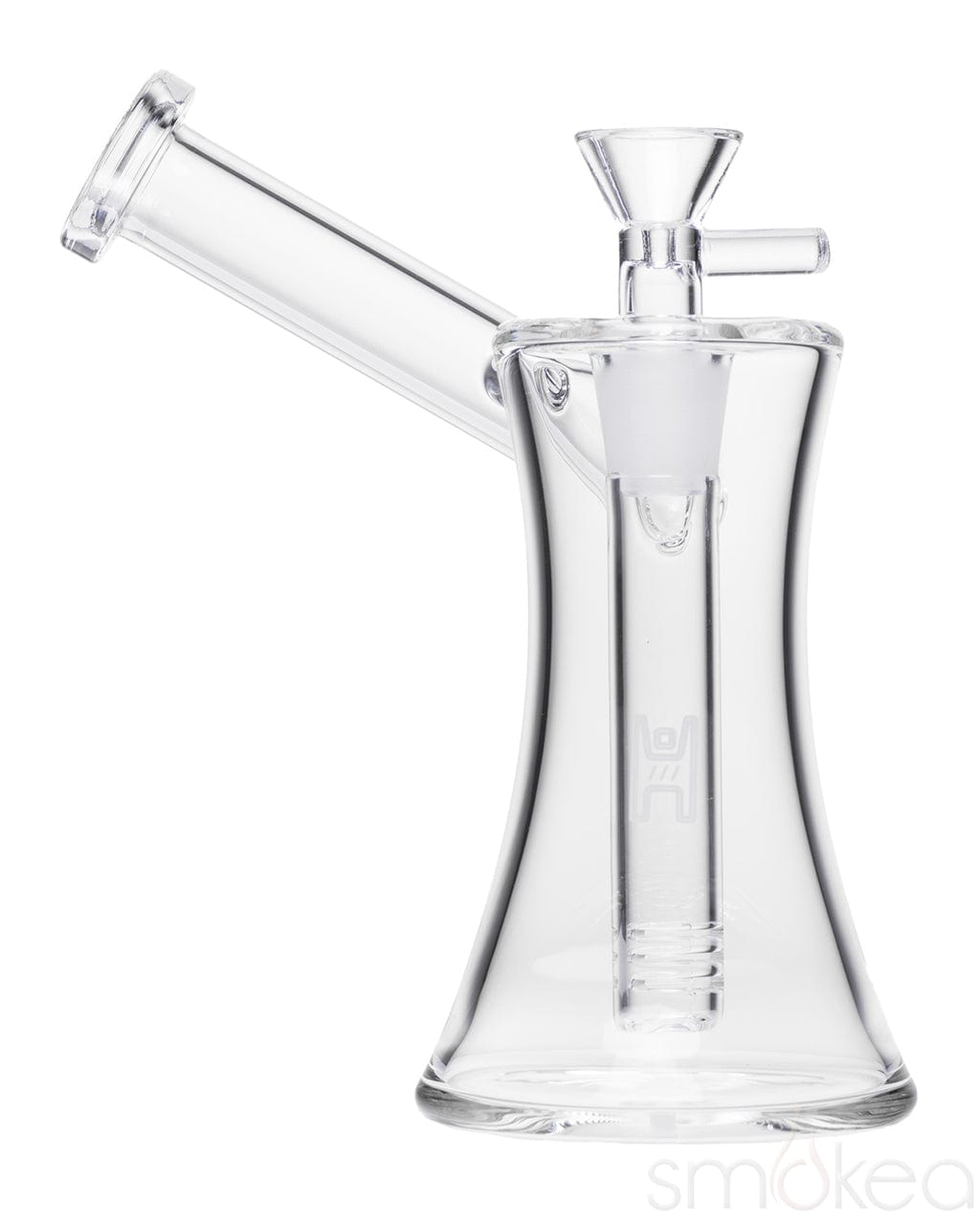 Combining innovative design with premium craftsmanship, the Human Grade 6" Hourglass Sidecar Bubbler offers a smooth, stylish way to enjoy your flower. Handcrafted from 100% borosilicate glass, this compact bubbler features a unique hourglass-shaped base paired with a side-mounted mouthpiece for a distinctive look and ergonomic feel. Whether you're a daily smoker or occasional enthusiast, this piece is built for comfort, performance, and durability.