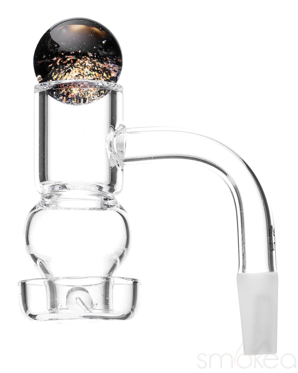 Built with a standard weld, this banger features a visible connection between the neck and the bucket, offering reliable durability at an accessible price. The thick quartz construction ensures long-lasting heat retention, and the included marble and terp pearls amplify movement and surface area for top-tier terp chasing. Available in 10mm or 14mm male joints with a 90° angle, this is an ideal choice for dabbers seeking high performance and value.