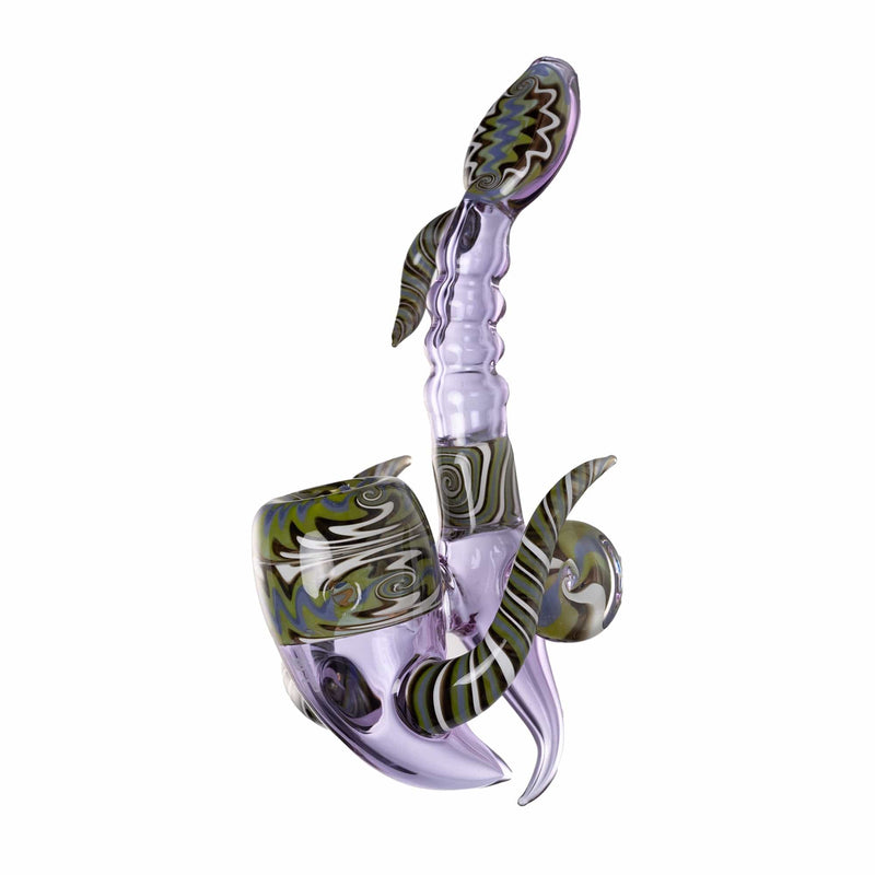 Add some bold character to your collection with the Human Grade Worked Sherlock Pipe, a beautifully handcrafted piece that merges classic form with eye-catching design. Made from thick borosilicate glass, this sherlock-style pipe features a worked body with dramatic horn accents, giving it an artistic, one-of-a-kind look while offering durability built for daily use.