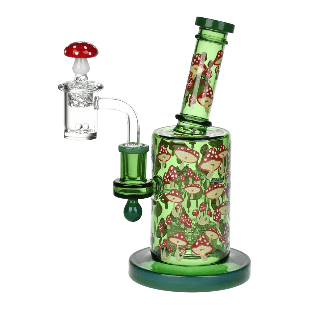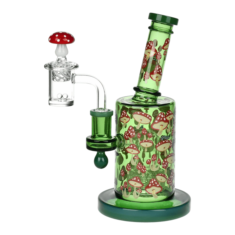 The 8-inch straight can-style dab rig is built for performance, featuring a matrix percolator for quick and effective water filtration and a sturdy stemless joint for direct, easy pulls. Equipped with a flat top quartz banger, a cube-themed vortex carb cap, and two terp pearls, this rig is ready to deliver thick, satisfying vapor. A matching dab tool with a cube handle ensures easy, precise loading of your concentrates.