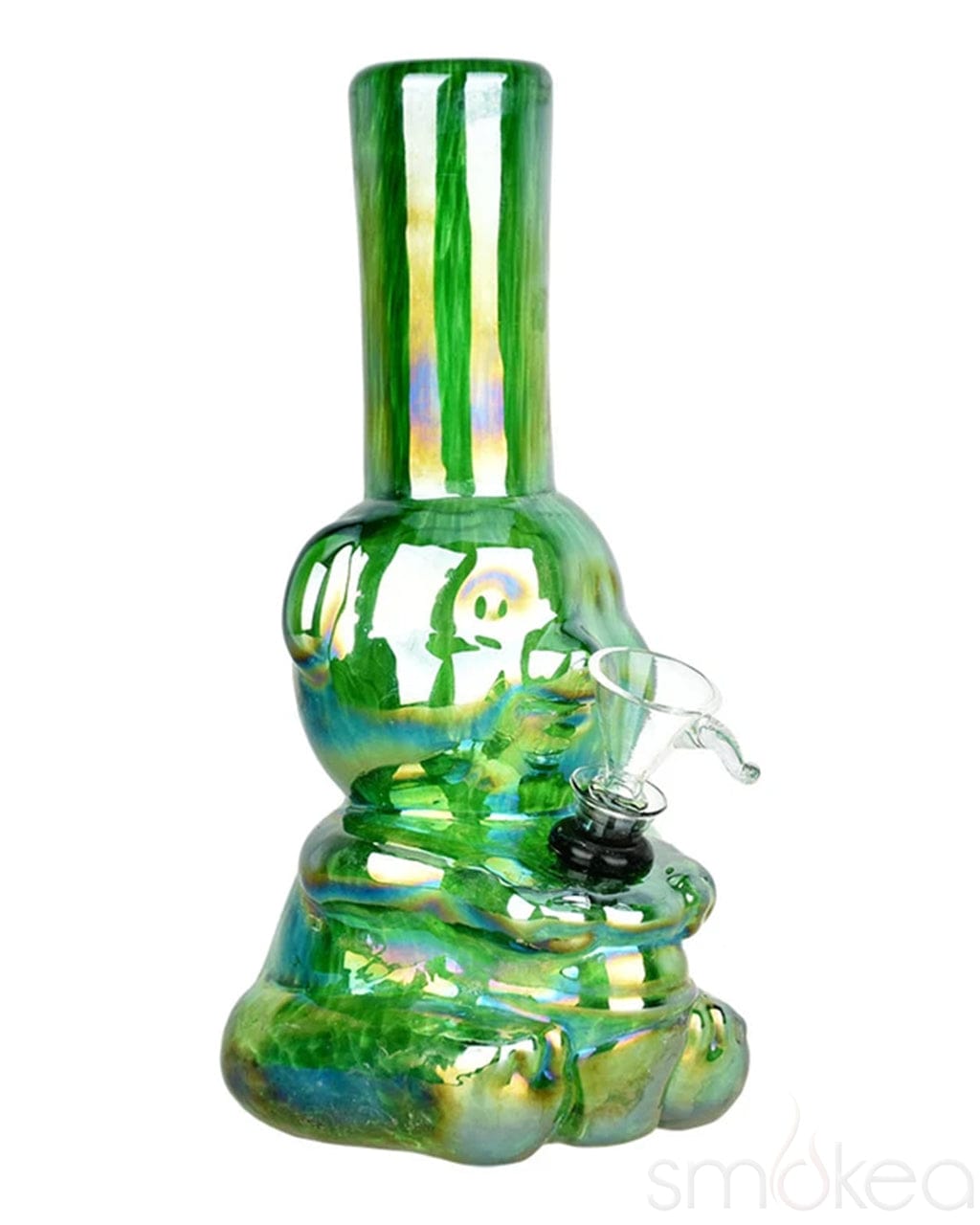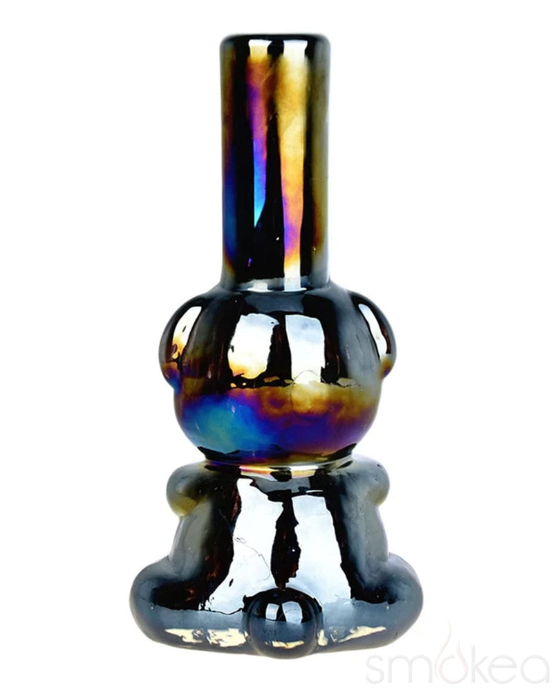 Add a touch of whimsy and shine to your collection with the SMOKEA "Bear-y Shiny" Electroplated Soft Glass Bong. Standing 7.75 inches tall, this adorable soft glass water pipe is shaped like a sitting bear and finished with a stunning metallic electroplated glaze. The vibrant solid frit glass paired with its shimmering surface makes this bong a playful yet eye-catching centerpiece for any smoking setup.