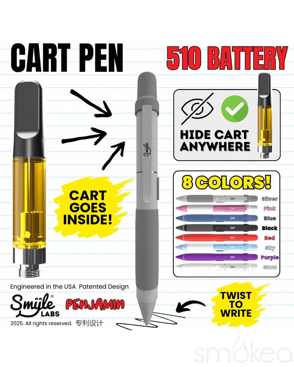Experience the ultimate in stealth and functionality with the Smyle Labs Penjamin Pen Vape Battery. Disguised as a fully functional ink pen, this 510-thread battery offers discreet, on-the-go aromatherapy without drawing unwanted attention. Whether you're writing notes or taking a rip, the Penjamin delivers smooth, consistent performance in a sleek and subtle package that's perfect for work, travel, or daily use.