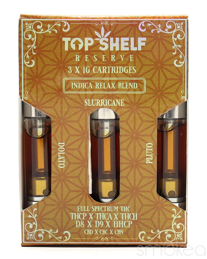 End your day on a high note with the Top Shelf Hemp "Relax" 2.0 Blend Vape Cartridges – Indica 3-Pack. This curated set of three 1,000mg cartridges is designed to deliver soothing, full-body relaxation with rich, flavorful clouds in every pull. Each indica-dominant blend is carefully formulated to help you unwind, de-stress, and settle into a state of calm after a long day.