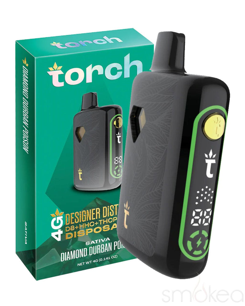 The Torch 4g Designer Distillate Vape in Diamond Durban Poison delivers a bold and uplifting experience with a premium blend of THC-A, THC-P, and HHC. This high-class formulation enhances the classic Durban Poison strain, known for its invigorating effects and complex flavor profile of bright citrus, warm spice, and smooth vanilla. Whether you're heading out on an outdoor adventure or diving into an artistic project, this sativa strain provides the perfect burst of energy and creativity.